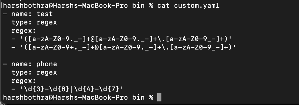 - Create a regex file as mentioned in the following documentation: https://github.com/projectdiscovery/katana#custom-fields
