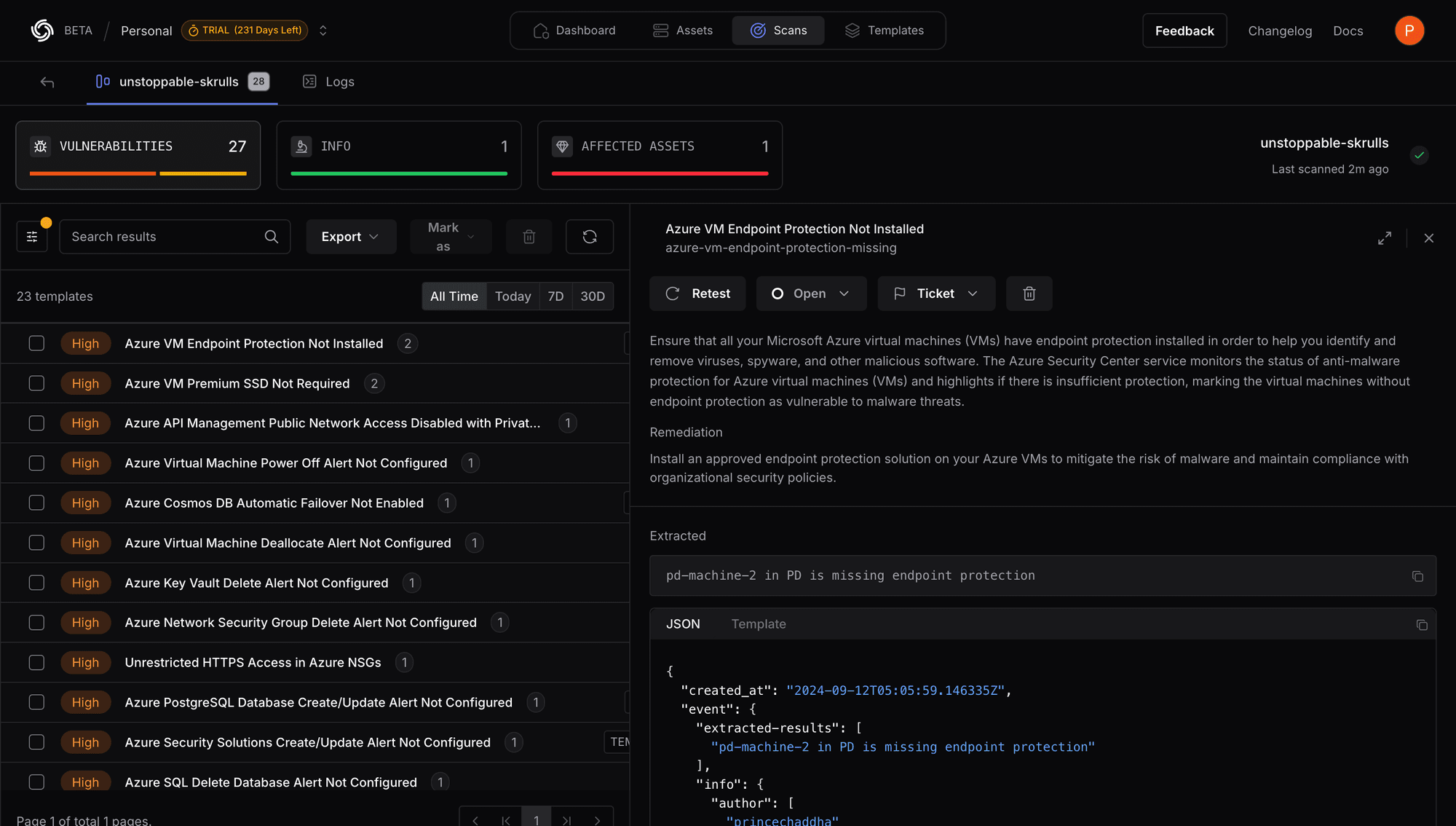 Now that we have a lot of findings, it would be very convenient to view these on the Cloud. Simply log into PDCP Cloud, and you will find a scan created with the results.