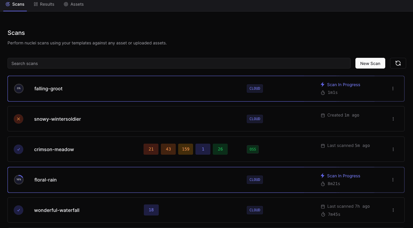 2View them at https://cloud.projectdiscovery.io/scans/abdcEFGH1234
