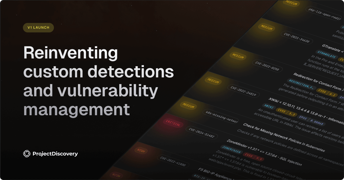 This month, we’re proud to introduce ProjectDiscovery v1 - the first major step toward a better, more forward-thinking model of vulnerability detection and management.