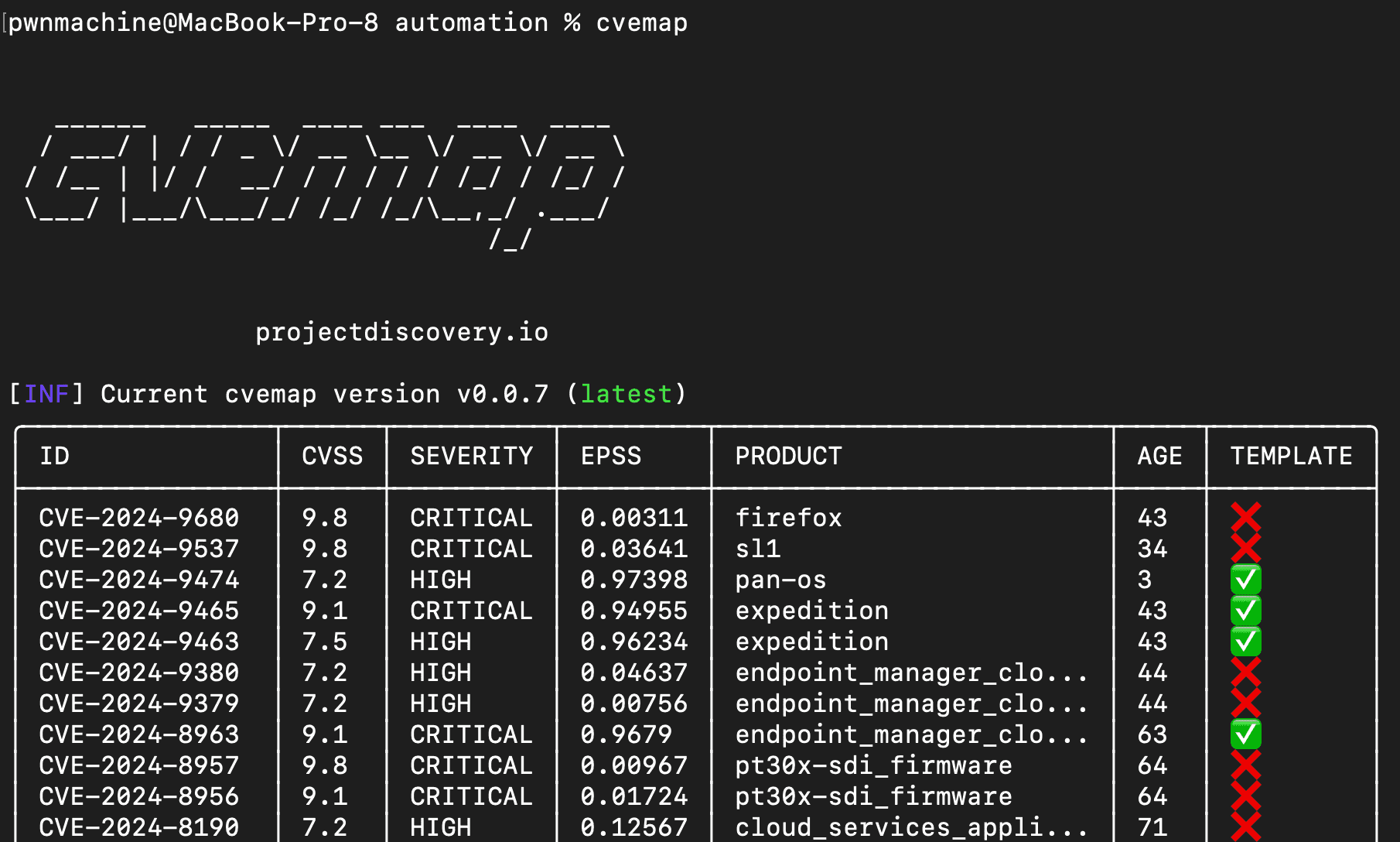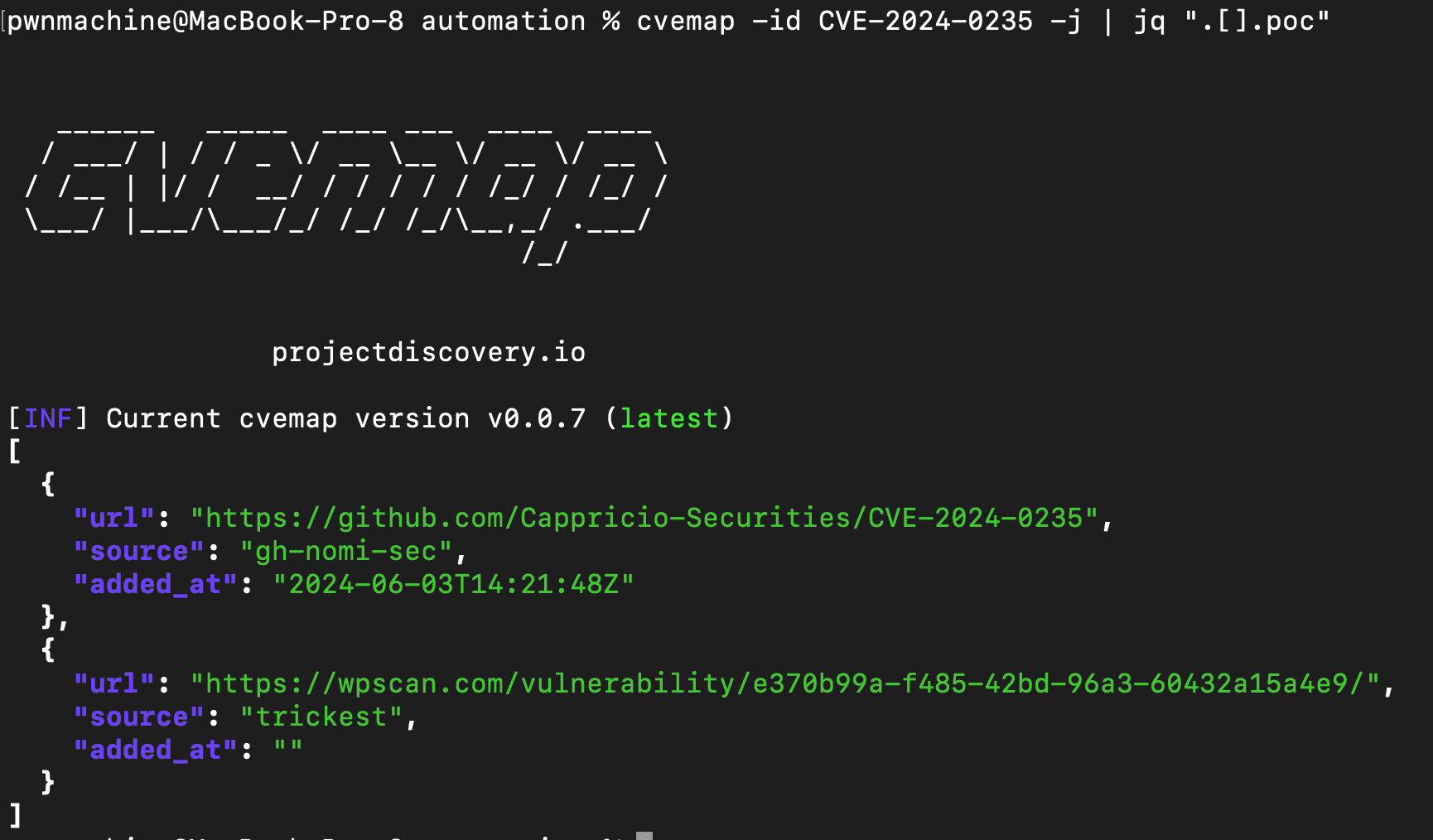 First, we needed to stay updated with the newest CVEs. We used CVEmap, our command-line tool that provides structured access to CVE databases.