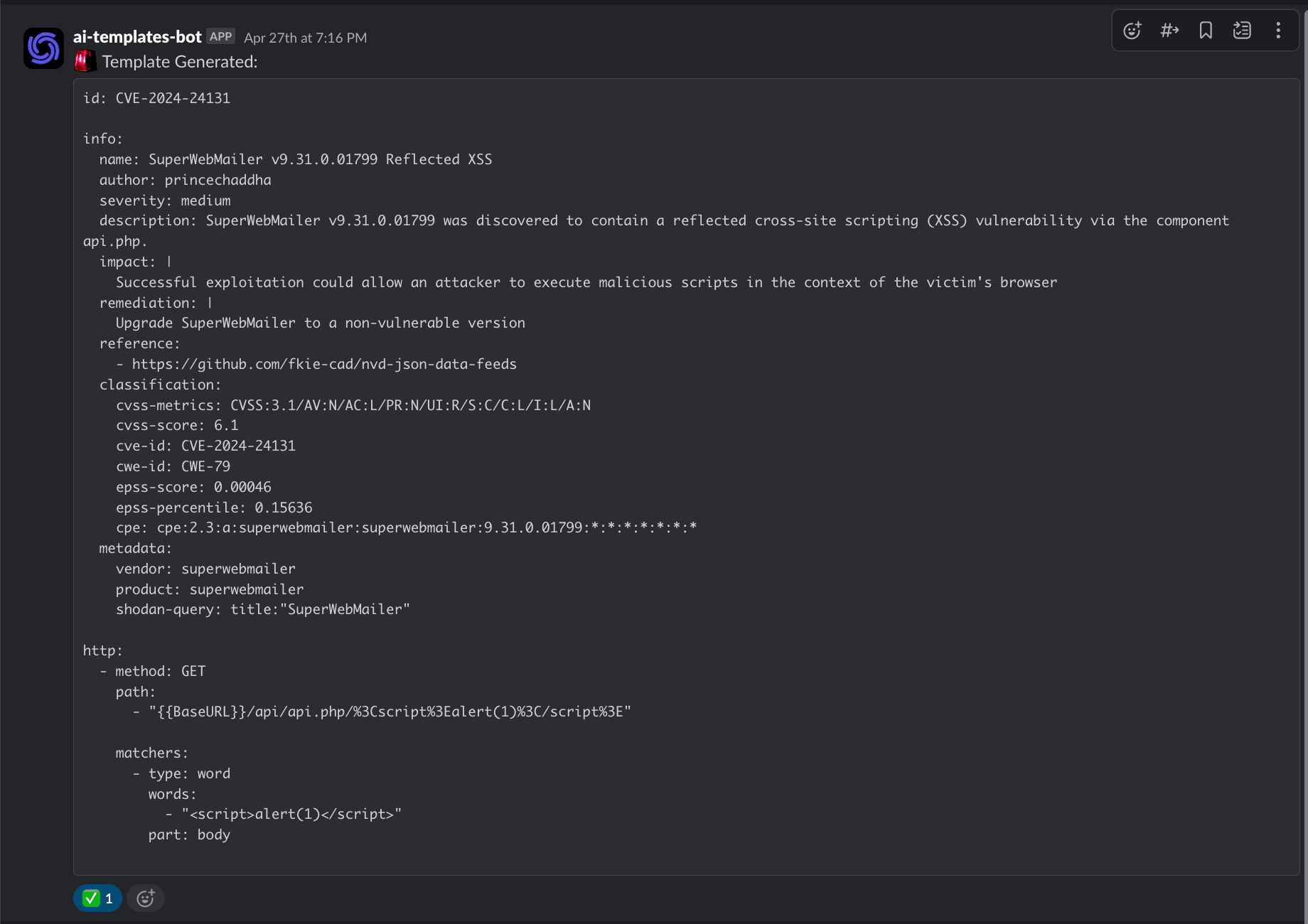 By leveraging AI, we’ve significantly sped up the process of generating Nuclei templates for new CVEs. This approach helps us stay ahead in identifying vulnerabilities and provides the community with timely detection capabilities.