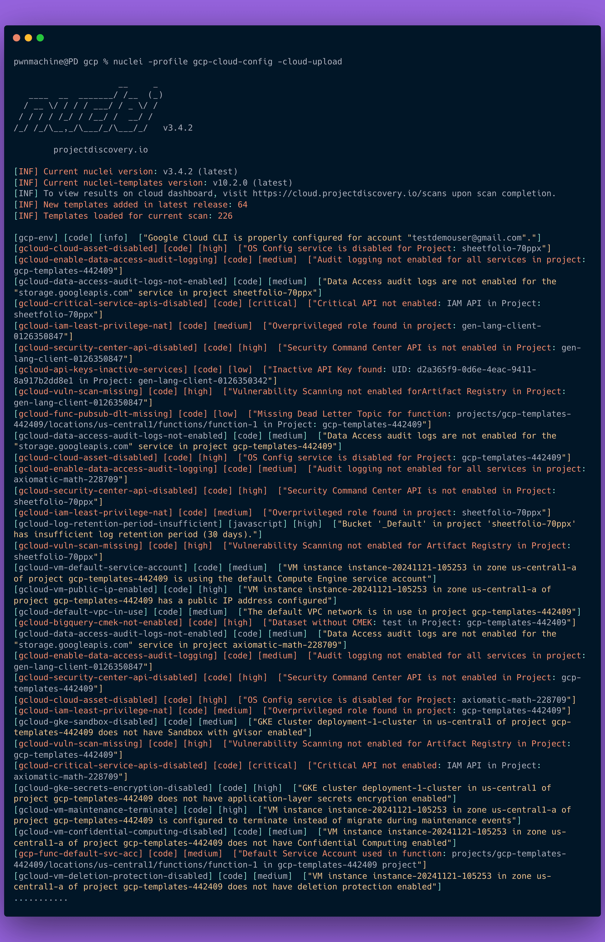 The Nuclei templates for GCP provide significant creativity and flexibility, enabling users to craft checks that cater to their specific workflow and environment. This approach not only helps in identifying and resolving security misconfigurations but also facilitates monitoring of their overall Google Cloud environment.