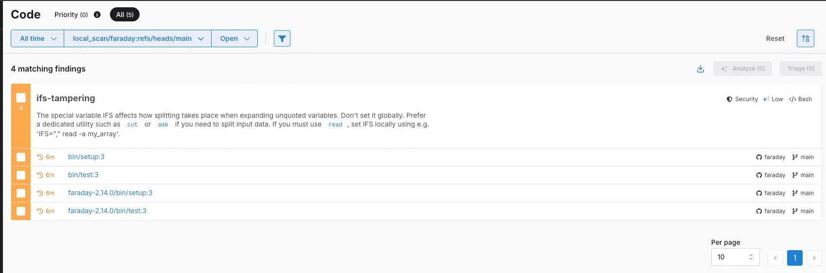 To see if whether traditional scanners would have caught this, we ran the Faraday repo through Snyk SAST and Semgrep.