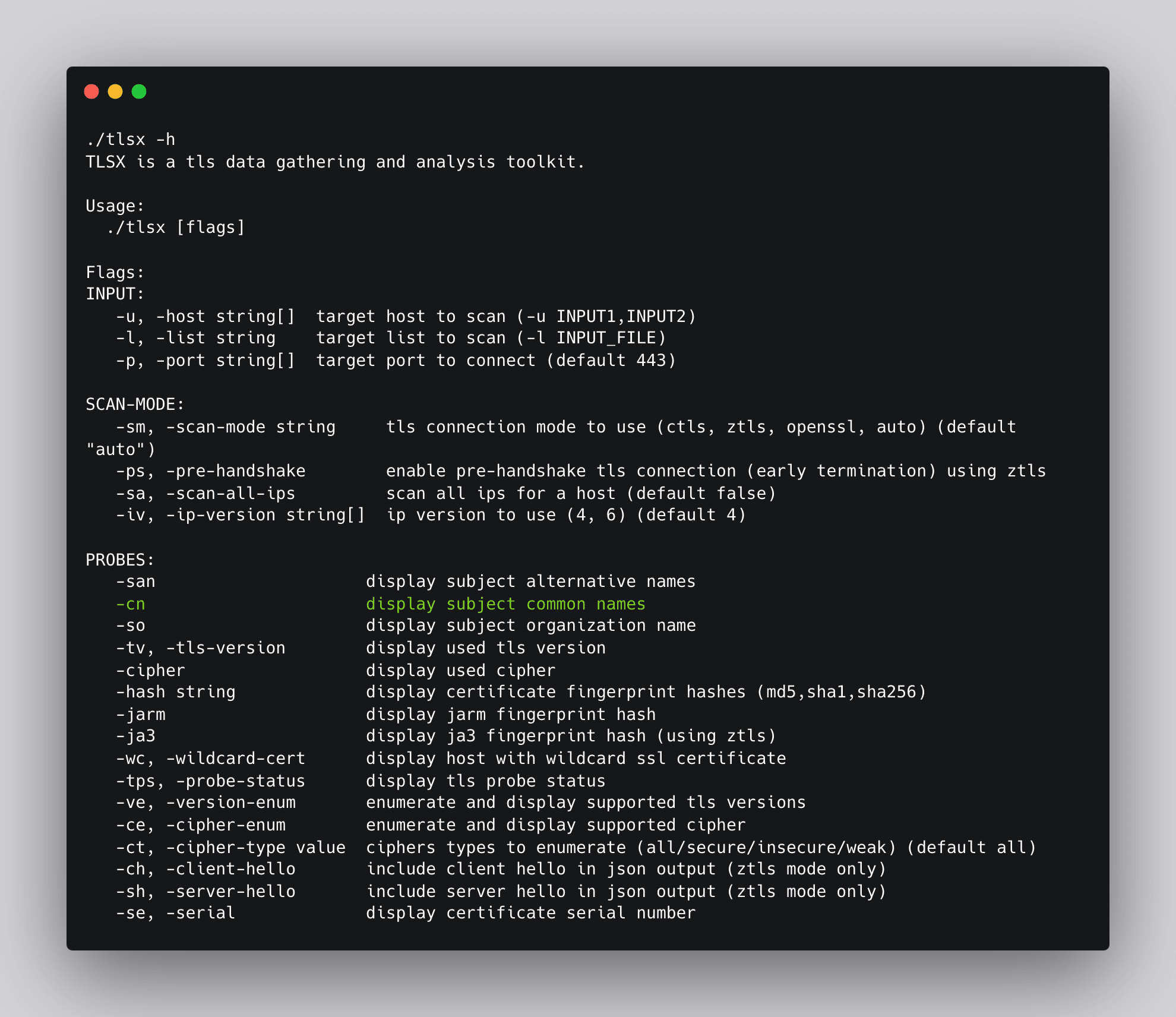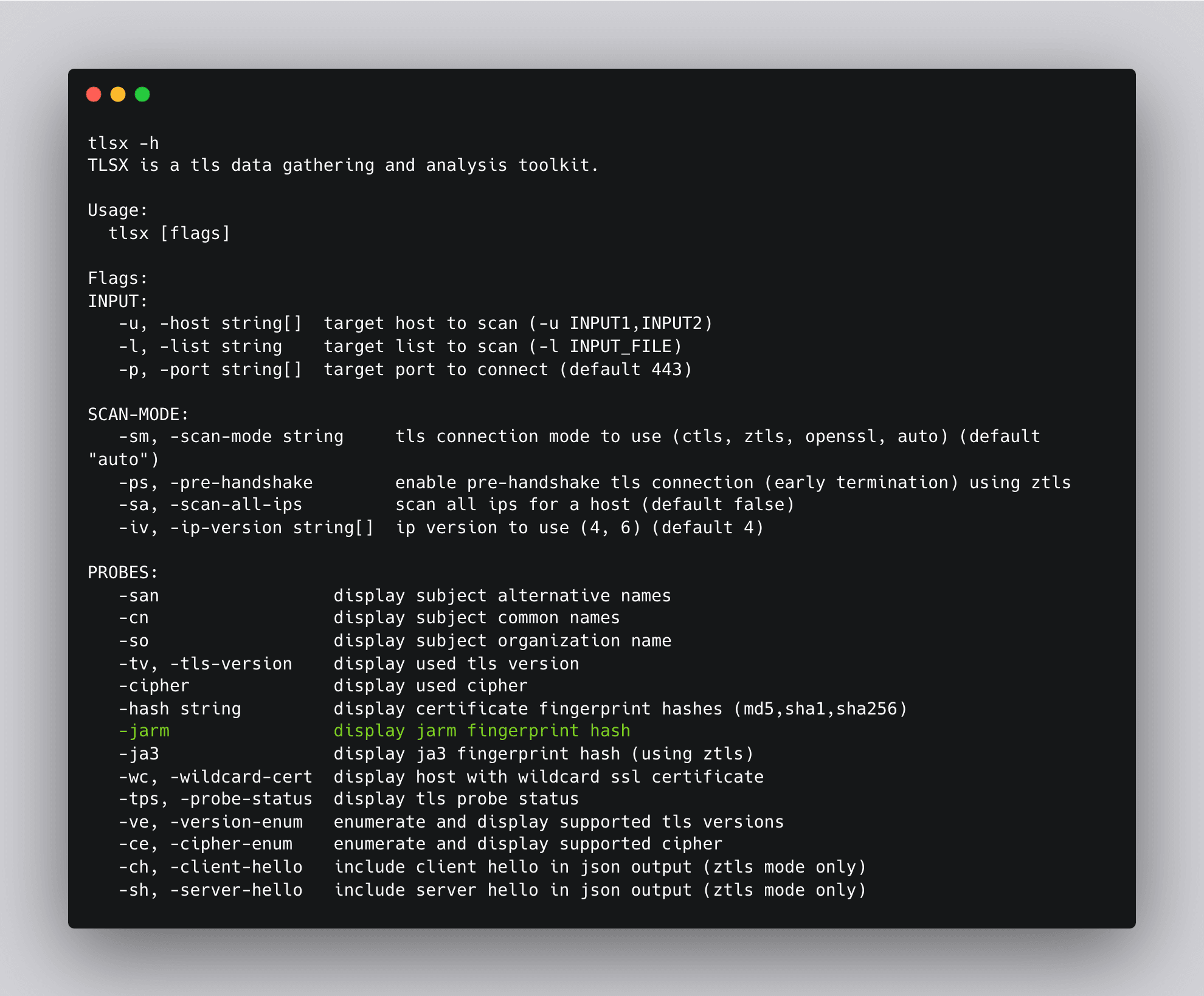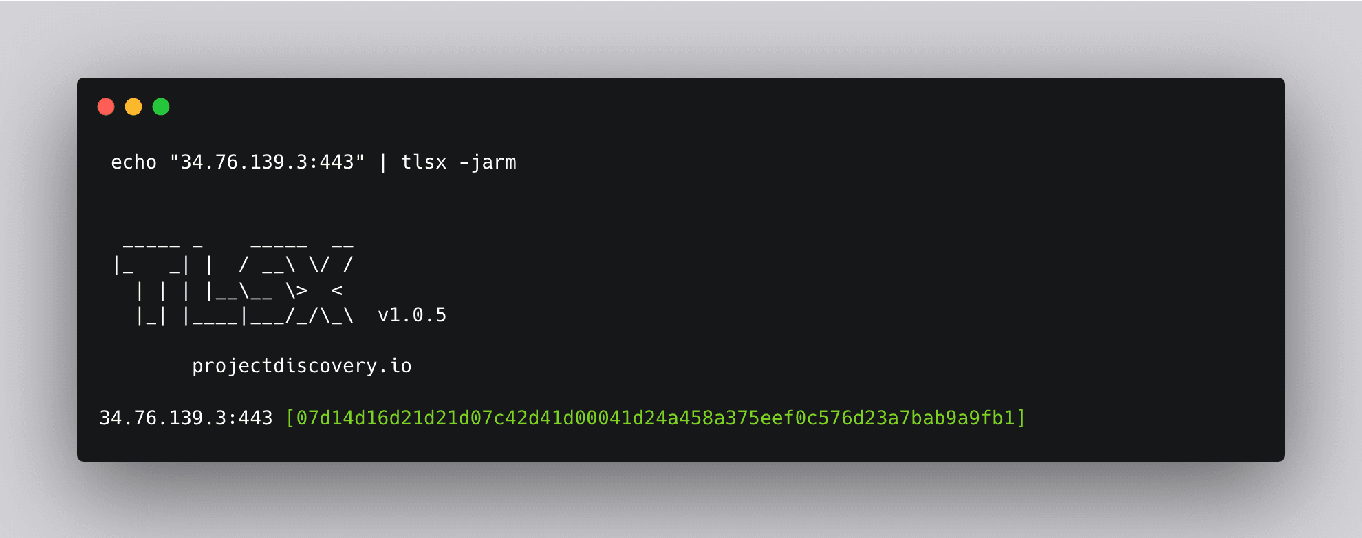 JARM is a technique that analyzes the server's TLS handshake process, focusing on various aspects such as cipher suite ordering, extensions, and their values to generate a fingerprint for the server. By comparing these fingerprints, we can identify potential C2 servers. Tlsx’s JARM argument can be used to get the JARM fingerprint for a target.