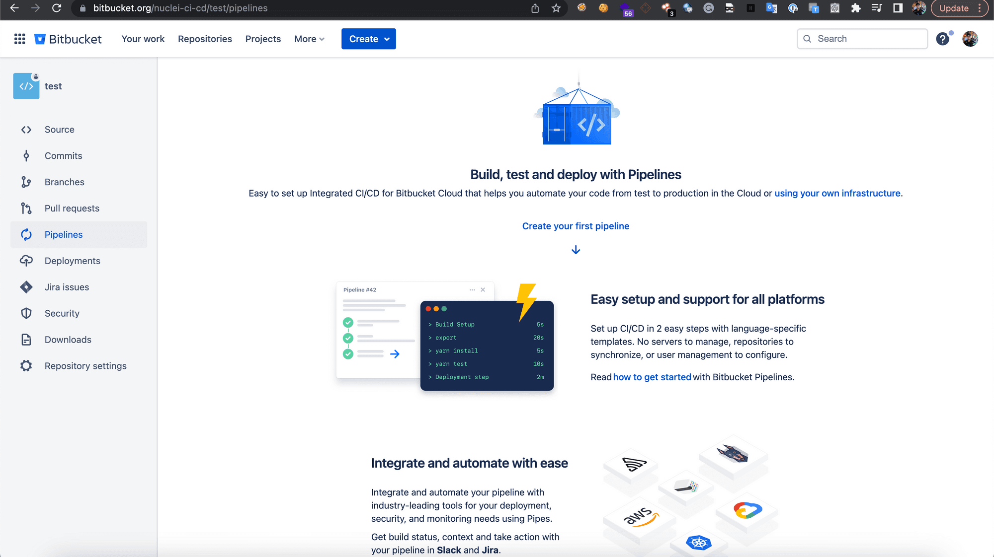 4. Now, click on the “Pipelines” sections and click on “Create your first pipeline”.