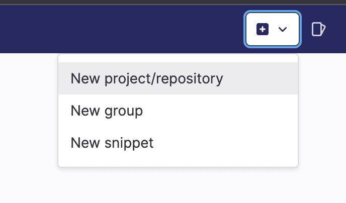 - Click on the + Icon in the top right corner and select the “New project/repository” option.