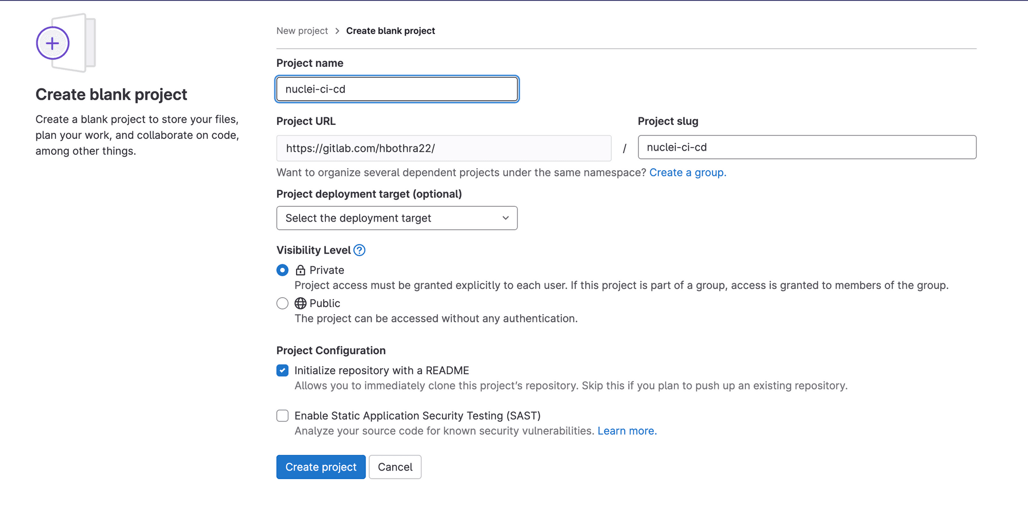 Integrating the nuclei scanning capabilities into your CI/CD pipeline is quite straightforward. We will create a private repository on GitLab and assume it hosts code for an application, say http://testphp.vulnweb.com/.