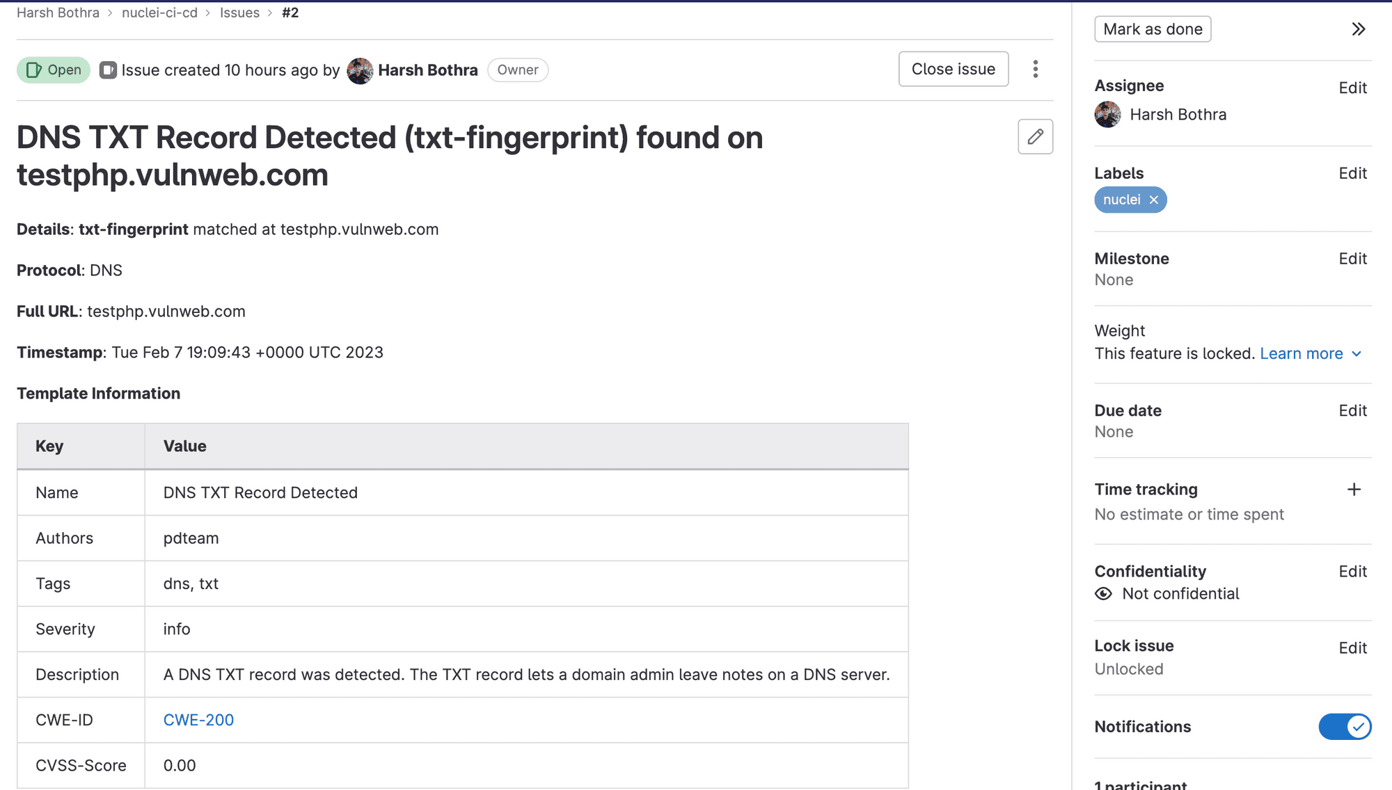 Once Nuclei has completed its scan, it is important to report any identified issues and notify the relevant parties. This can be done using a tool like GitLab Issues, which allows you to create and track issues within your repository.