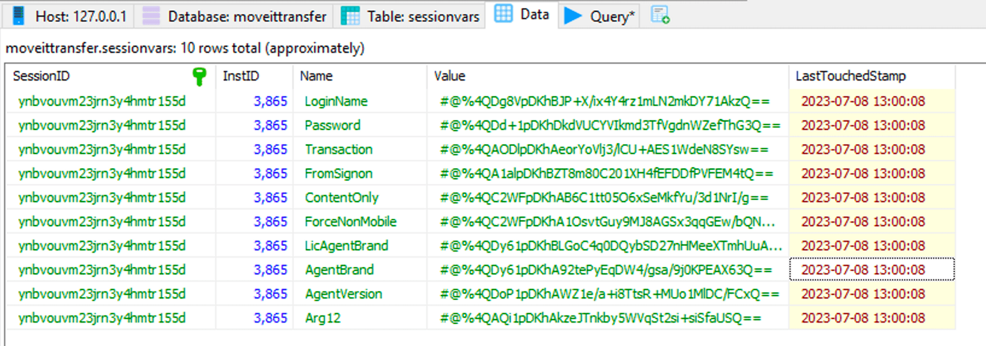 The final step in this process is attempting to retrieve session variables from the database. The logic behind this is as follows: if a session is provided via a cookie (ASP.NET_SessionId), the backend system will check if any variables were previously set for this session. If such variables exist, they will override the parameters received in the current request.
