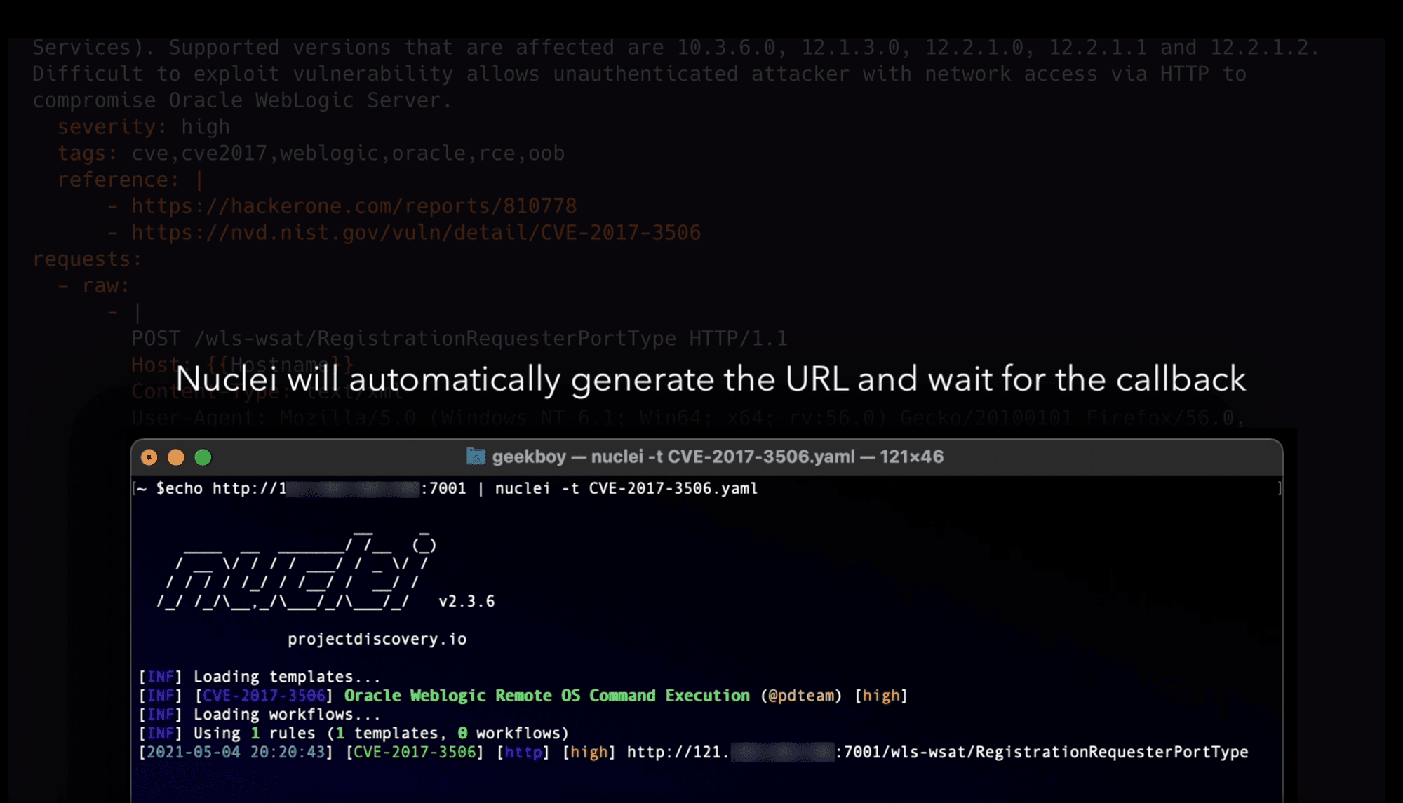 35 - "dns"The below template detects Weblogic RCE by deserialization using interact.sh OOB server of nuclei.