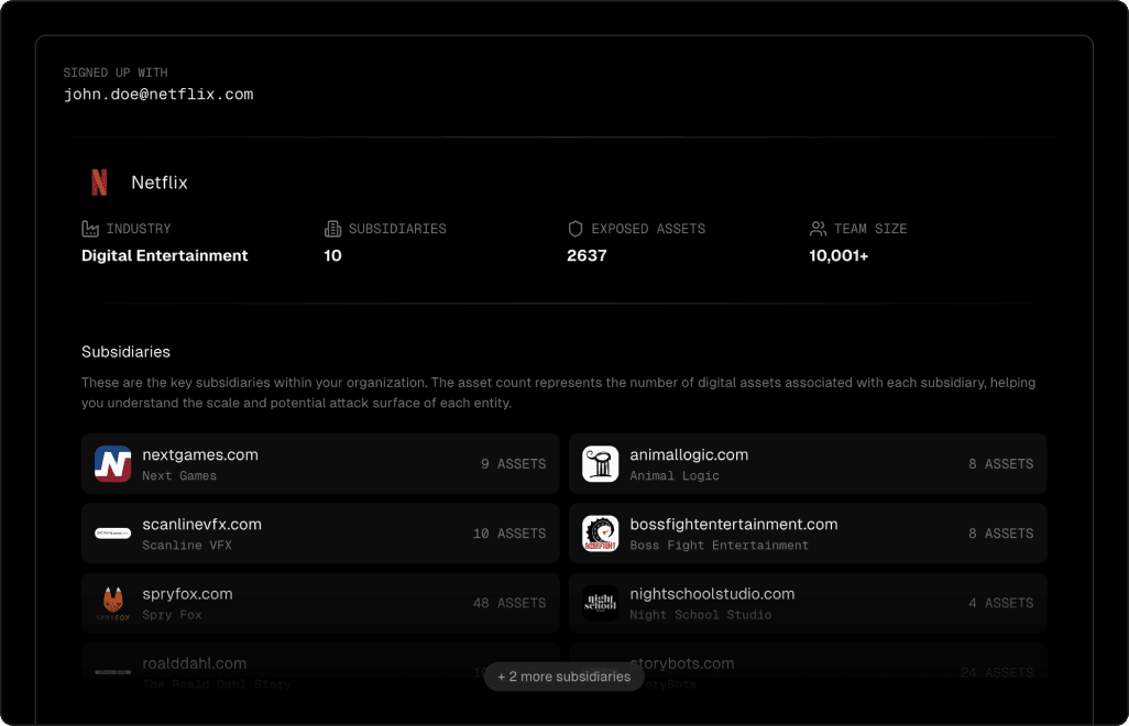 For large organizations, mapping out subsidiaries, brands, and owned web properties is a challenge in itself. Many enterprises operate hundreds or even thousands of related entities, making it difficult to get a clear picture of their full attack surface.